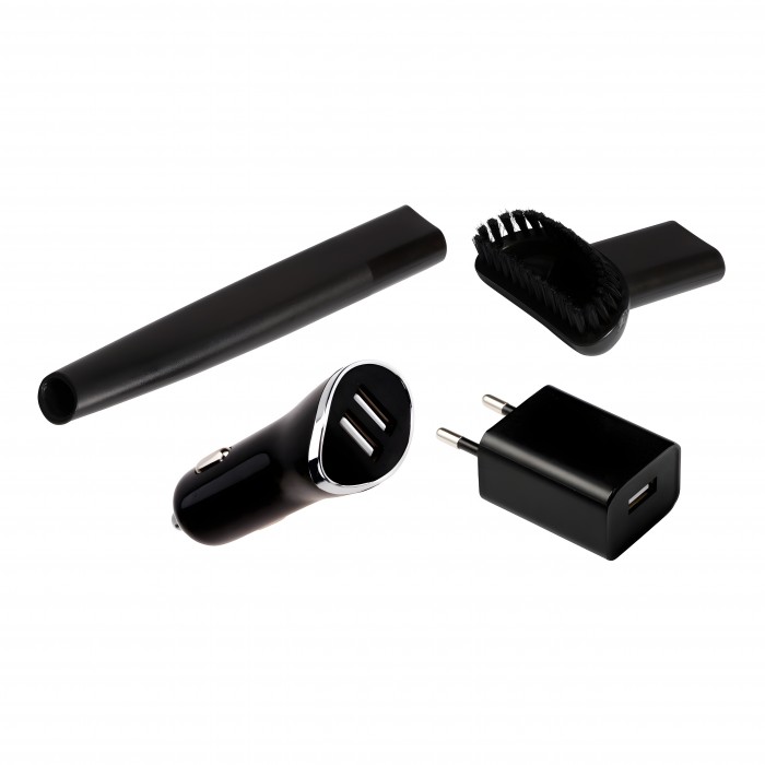 | Incluye | Filtro - Colector de polvo - Tapa protectora - Boquilla para rincones - Boquilla multiuso - Cable microUSB - Adaptador de CA |
