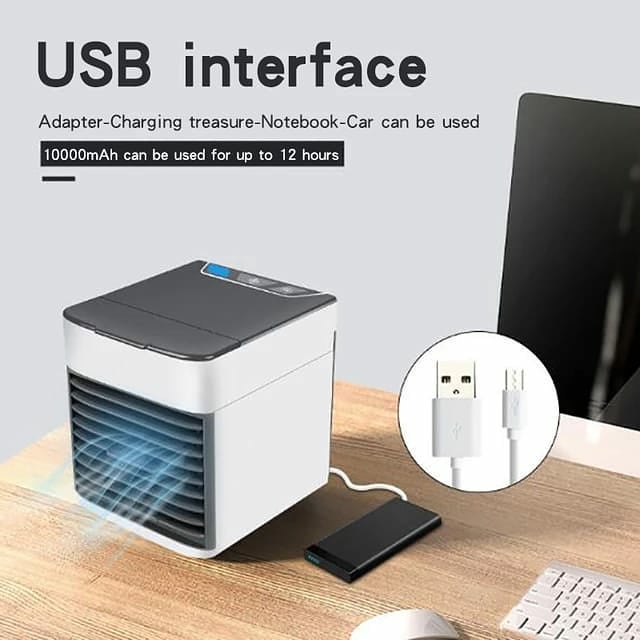 Alimentado por USB, este ventilador de escritorio silencioso lleva el frescor a tu espacio personal de manera eficiente y discreta. Ya sea en la oficina, en casa o donde la aventura te lleve, el Mini Aire Acondicionado está diseñado para mantenerte fresco y cómodo.